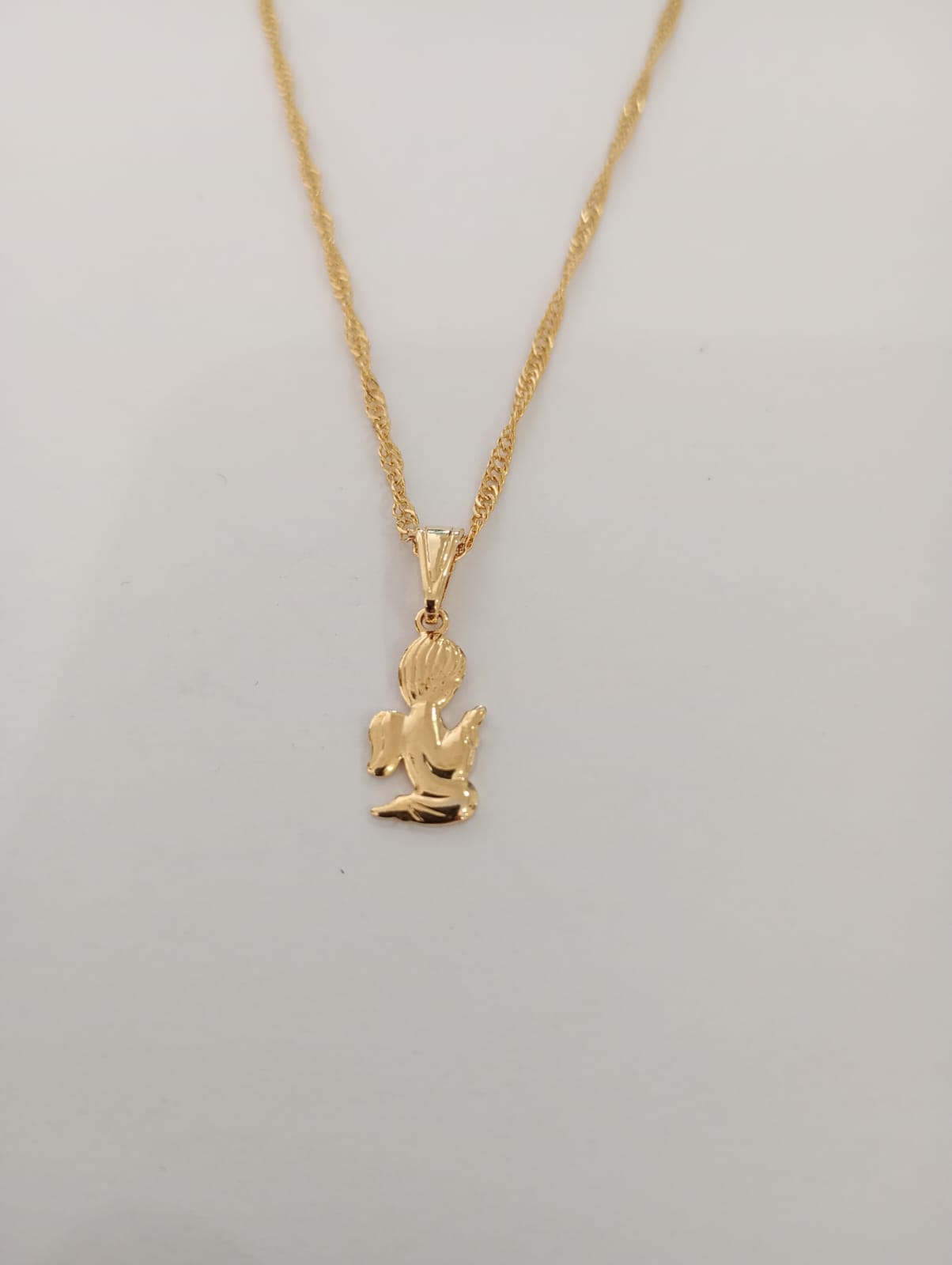 Pingente feito em latão galvanizado a ouro, estampado, recortado e corrente tipo cingapura com base de latão galvanizado a ouro, fecho tipo mosquetão