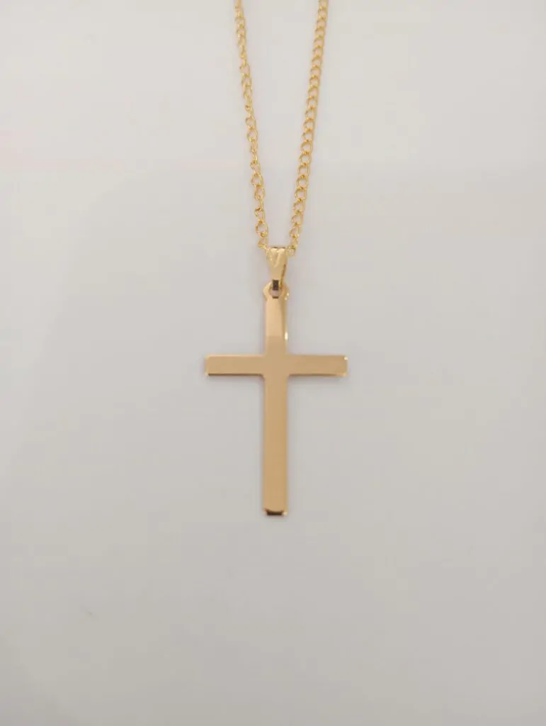 Gargantilha cruz lisa com corrente masculina Folheada...