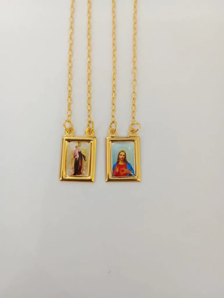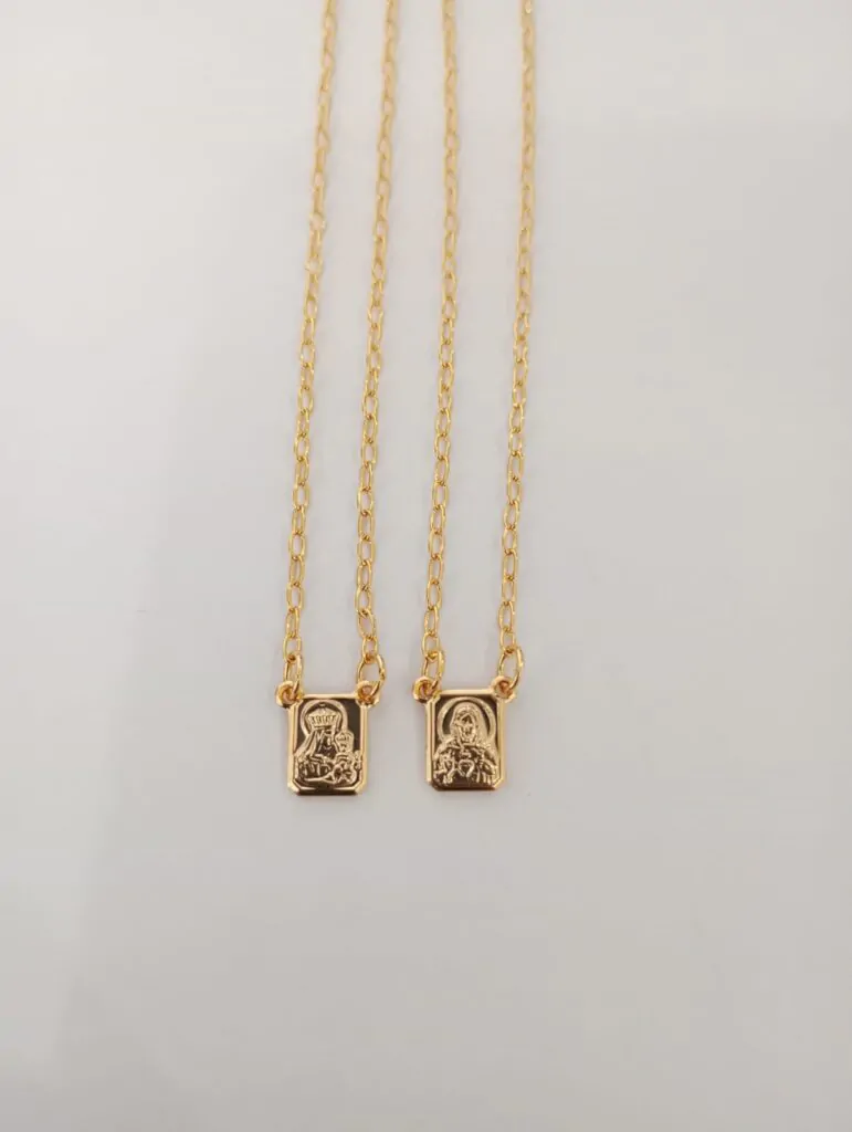Escapulario Tradicional Retangular mini folheado a Ouro