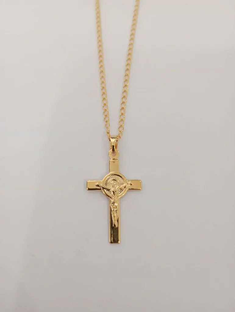 Gargantilha cruz c/ cristo corrente masculina folheado...