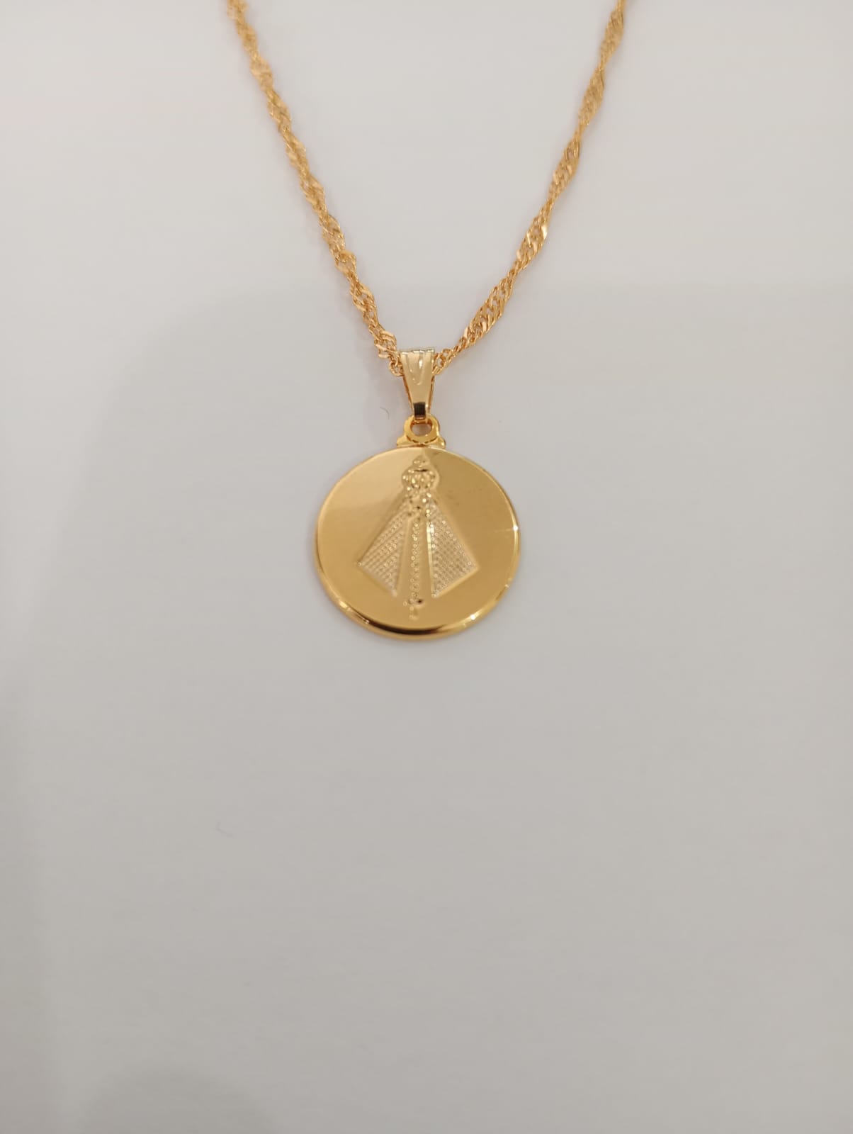 Gargantilha Nossa Senhora Aparecida Redonda Folheada a Ouro